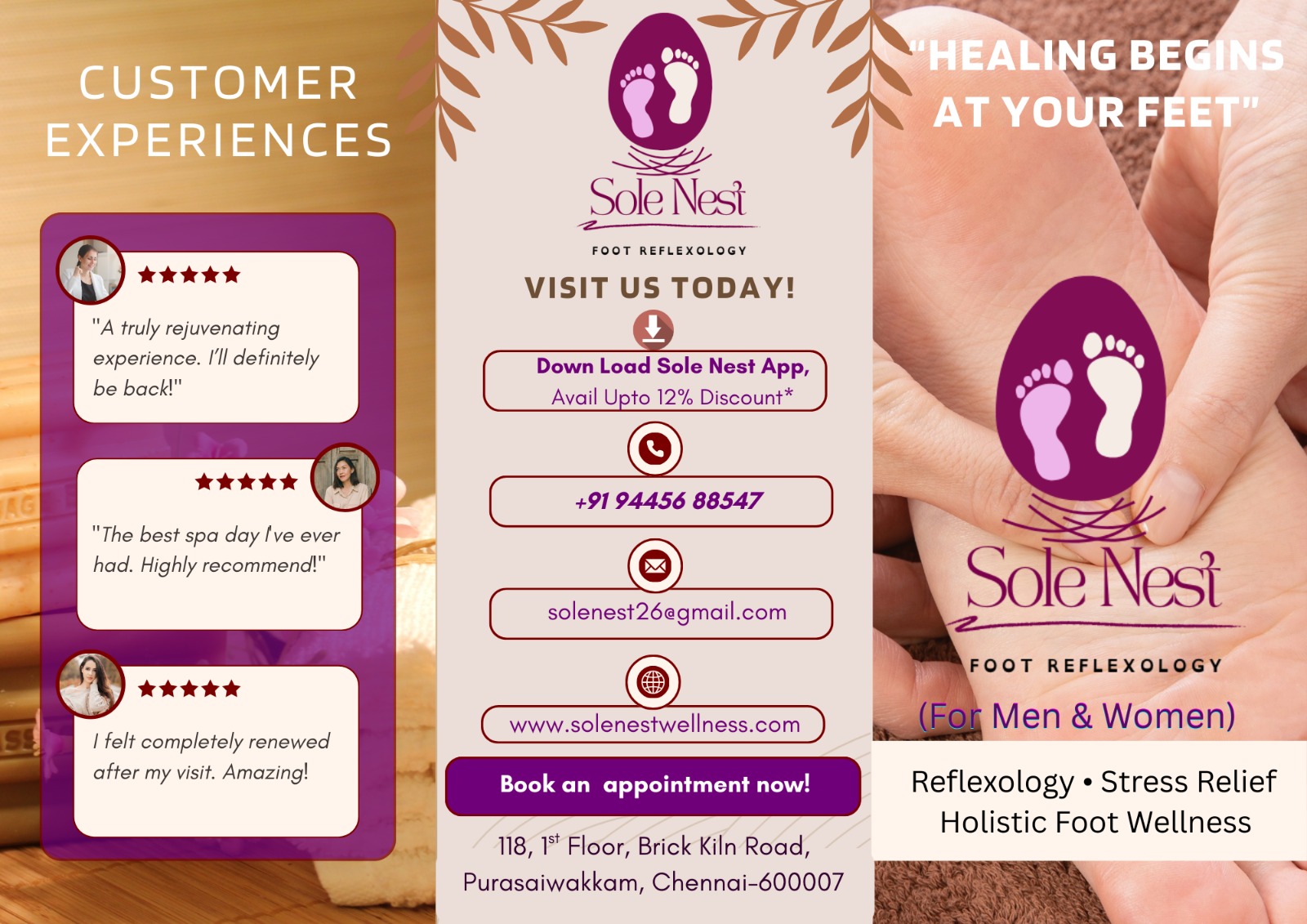 We believe true healing begins at the feet and flows throughout the body. Our mission is to deliver expert reflexology and natural wellness therapies that restore balance, comfort, and vitality—making quality wellness care affordable and accessible for everyone.